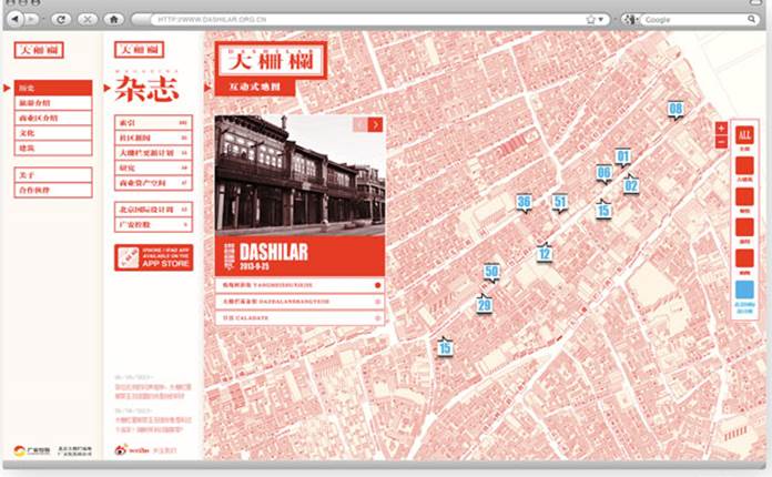 大柵欄官方網(wǎng)站于2014年6月正式對外運(yùn)營,網(wǎng)站單日訪問量最高為9000次,設(shè)計(jì)周期間總訪問量高達(dá)33.8萬次,大柵欄網(wǎng)站憑借其獨(dú)特精美的設(shè)計(jì)榮獲2014紅點(diǎn)獎(jiǎng)傳播設(shè)計(jì)獎(jiǎng)。