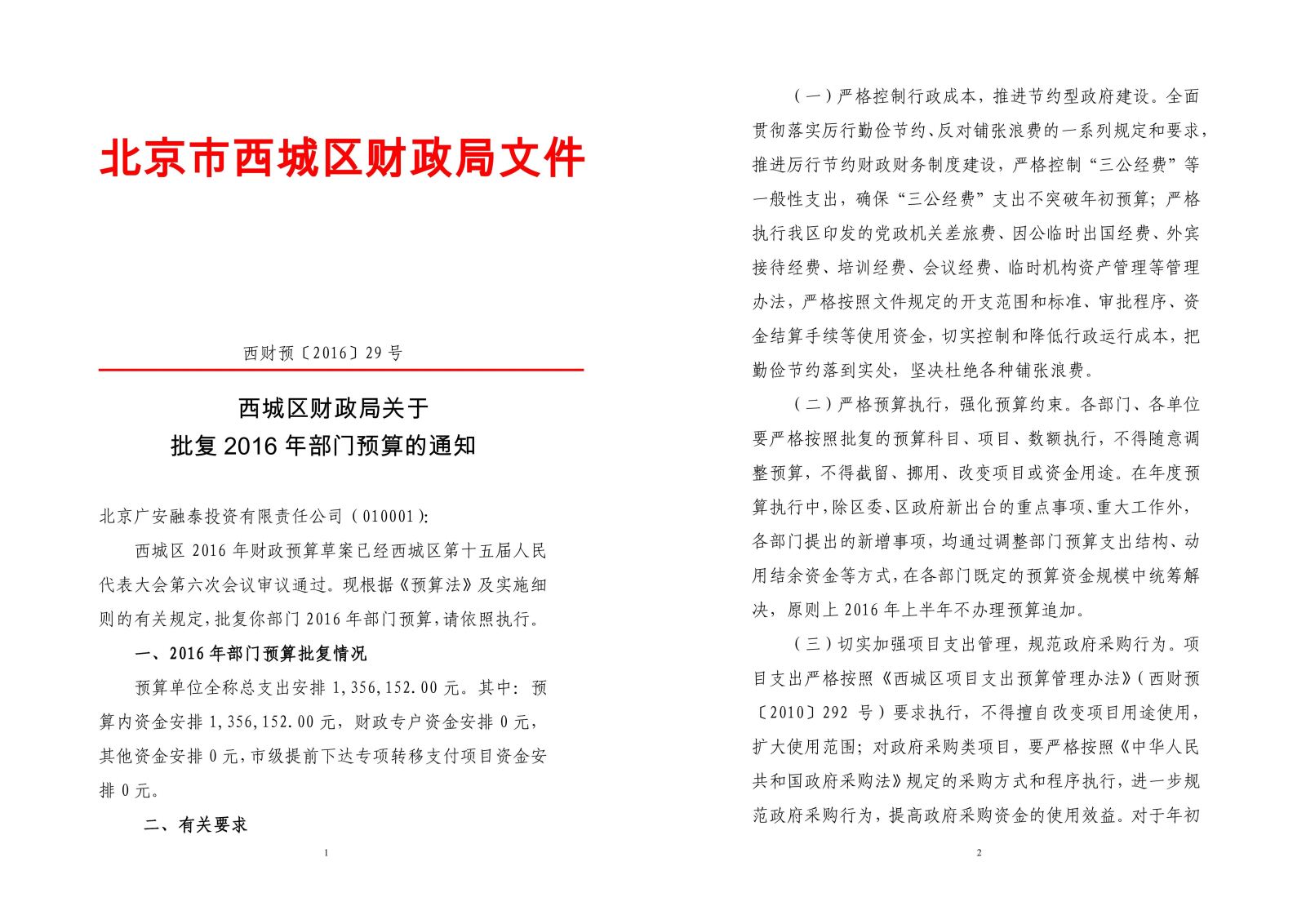 附件:區(qū)財政局關(guān)于2016北京廣安融泰投資有限責任公司預(yù)算的批復(fù).pdf